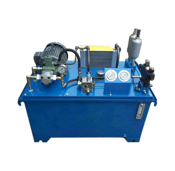 電機帶動油泵旋轉,泵從油箱中吸油供油,將機械能轉換為液壓油的壓力能。液壓油通過集成塊(或閥組合)實行方向、壓力及流量調節后,經外接管路至液壓機械的油缸或油馬達中,從而控制執行機構方向的變換、力量的大小及速度的快慢,推動各種液壓機械作功,實現各種規定的動作。