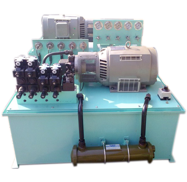 電機帶動油泵旋轉,泵從油箱中吸油供油,將機械能轉換為液壓油的壓力能。液壓油通過集成塊(或閥組合)實行方向、壓力及流量調節后,經外接管路至液壓機械的油缸或油馬達中,從而控制執行機構方向的變換、力量的大小及速度的快慢,推動各種液壓機械作功,實現各種規定的動作。