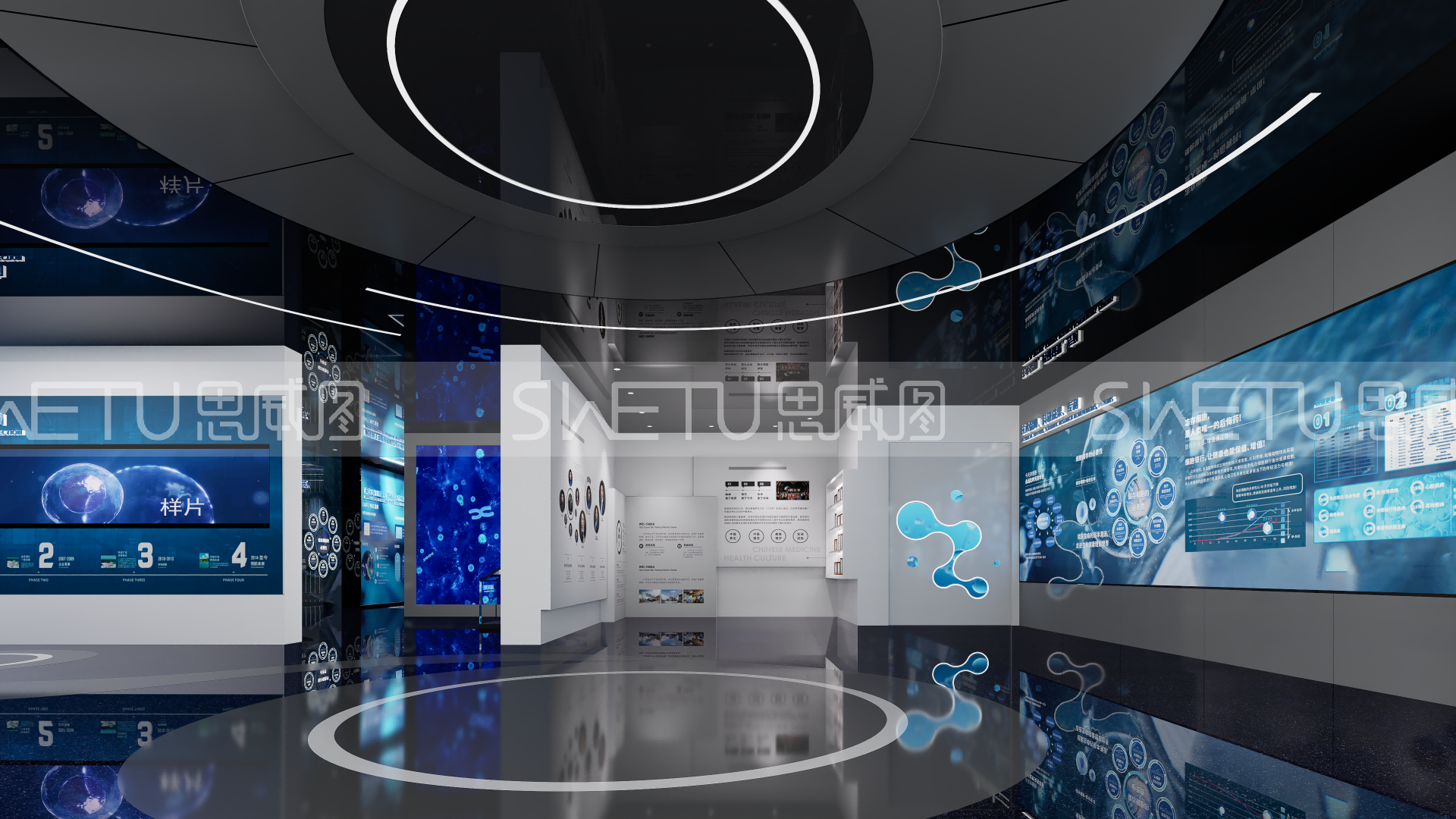 環(huán)形展廳本身就是生命周期的隱喻。地面熒光數(shù)字從出生開始流動(dòng),每十歲亮起的警示燈帶像倒計(jì)時(shí)器:30歲提醒端粒檢測,50歲投射血管造影,70歲啟動(dòng)肌少癥模擬。這種循序漸進(jìn)的危機(jī)設(shè)計(jì),配合4D體驗(yàn)艙提供的解決方案,形成完美的"威脅-出路"閉環(huán)。