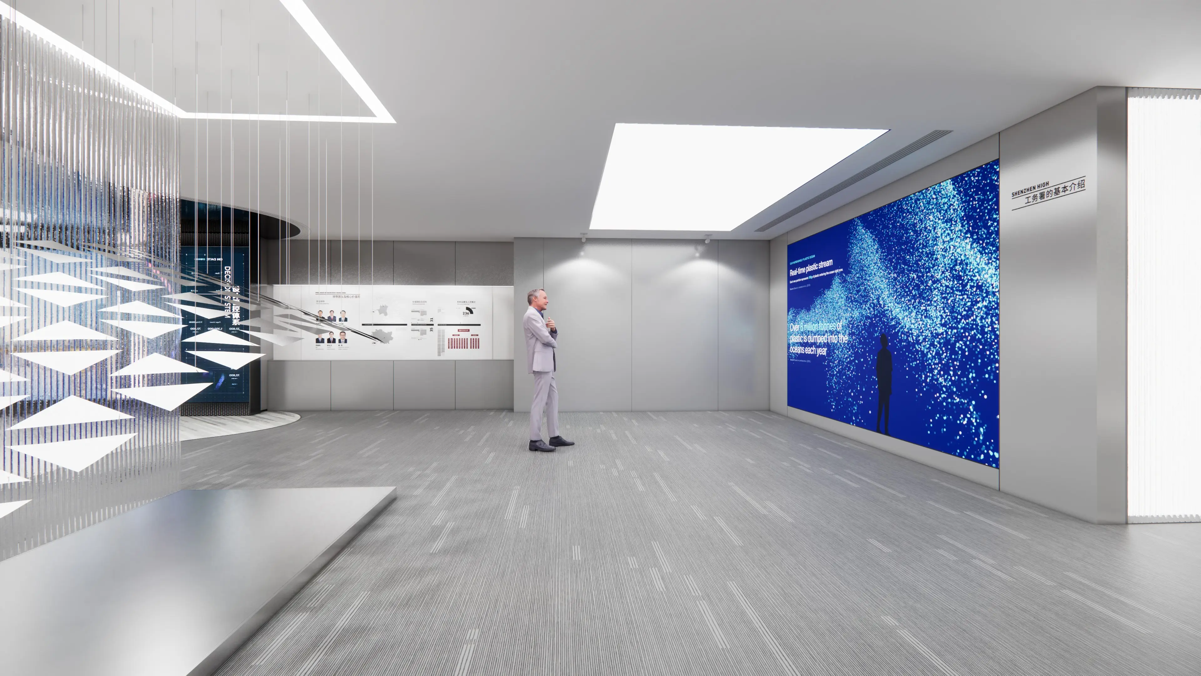 這個充滿未來感的科學展廳,每處細節都暗藏巧思。互動墻面的壓力傳感器能感知觸碰力度轉化為細胞分裂的動態效果。