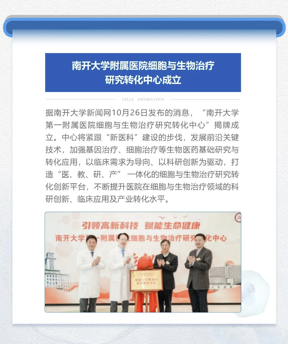 2. 南開(kāi)大學(xué)附屬醫(yī)院細(xì)胞與生物治療研究轉(zhuǎn)化中心成立