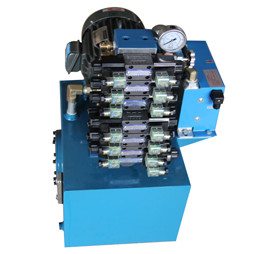 電機帶動油泵旋轉,泵從油箱中吸油供油,將機械能轉換為液壓油的壓力能。液壓油通過集成塊(或閥組合)實行方向、壓力及流量調節后,經外接管路至液壓機械的油缸或油馬達中,從而控制執行機構方向的變換、力量的大小及速度的快慢,推動各種液壓機械作功,實現各種規定的動作。